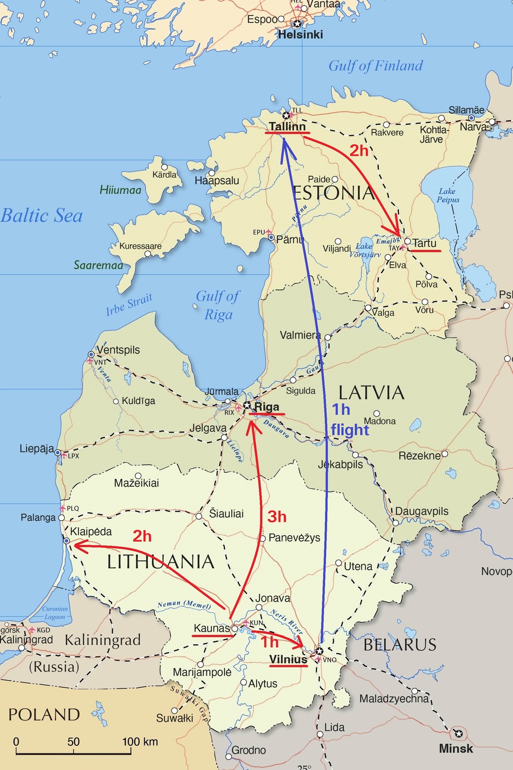 The Baltic states are well-connected, with flights not exceeding one hour and travel by car, train, or bus taking only a few hours. Visitors can arrive at Vilnius (VNO), Kaunas (KUN), Palanga (PLQ), Riga (RIX), Tallinn (TLL), and even Tartu (TAY) airports.